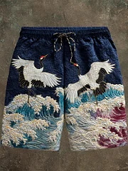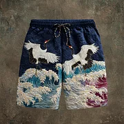 Japanese Ocean & Crane Vintage Men's Mini Short