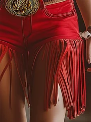 Pair these Western Red Fringe Shorts with a simple white t-shirt or bohemian shirt to show off their unique design. For a more sophisticated look, pair them with a belt and ankle boots. Complete the Western look with a wide-brimmed hat and layered necklaces. The perfect blend of style, comfort and uniqueness, this pair is a must-have for casual outings or themed events.