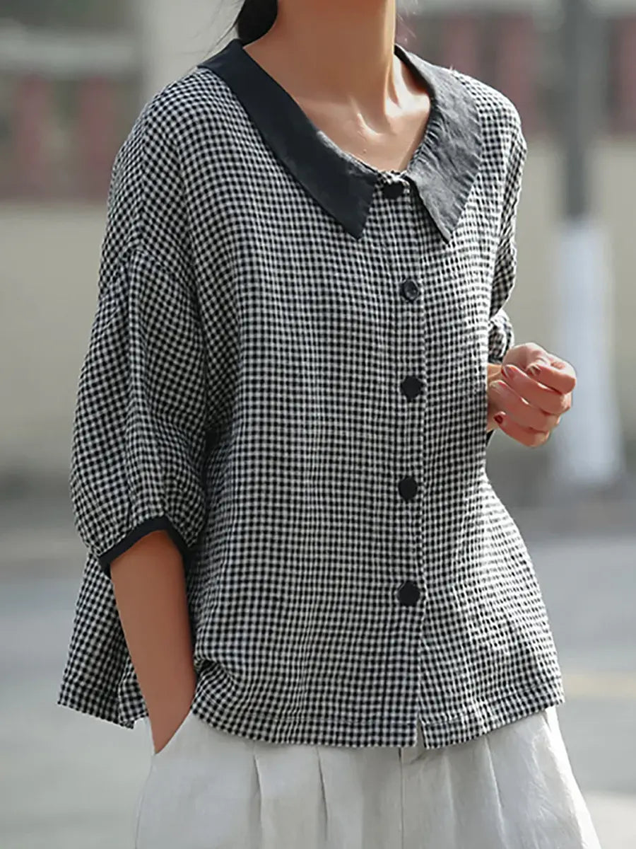 Women's Retro Plaid Pattern Art Casual 3/4 Sleeve Cotton Shirt