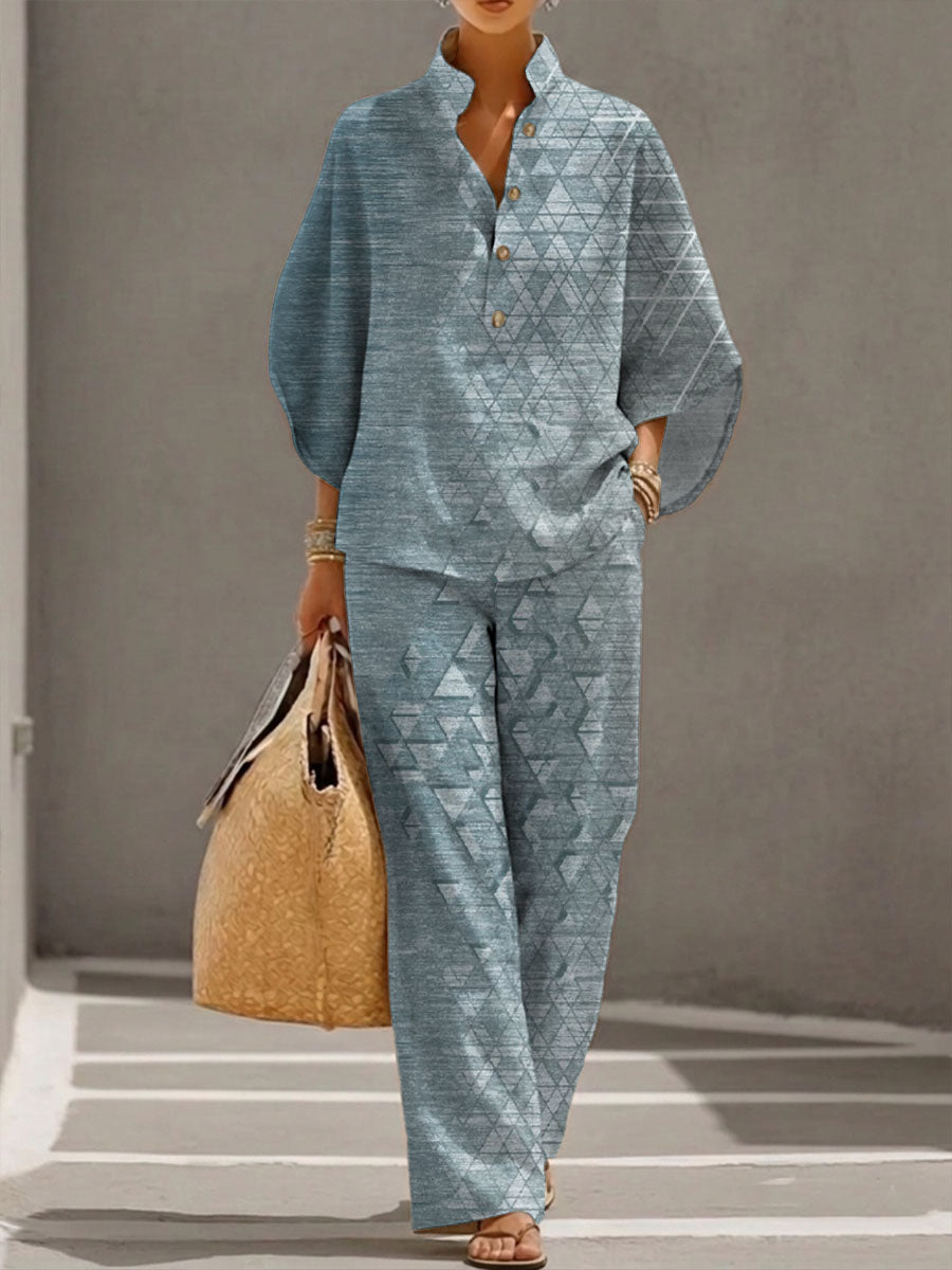 Women's Geometric Art Print Casual Cotton-linen Two-piece Set