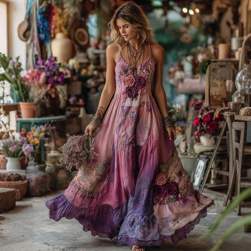 Women's Elegant Bohemian Pastoral Style Maxi Long Dress