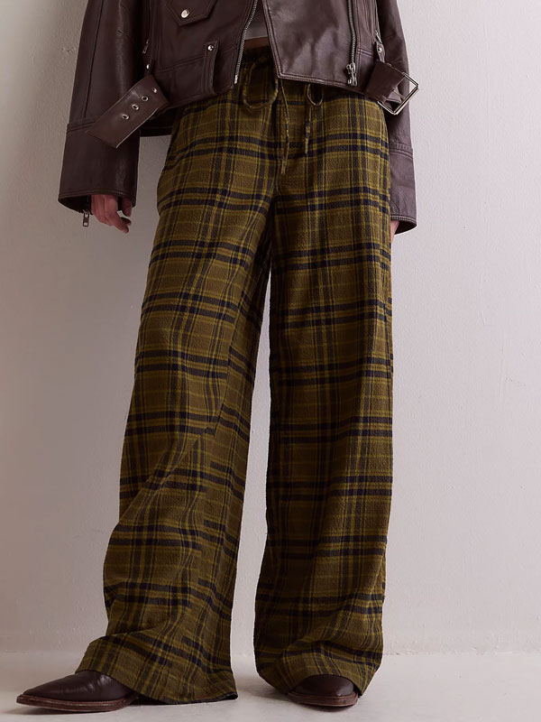 Women's Retro V-neck Plaid Long-sleeve Bohemian Pastoral Style Maxi Long Dress