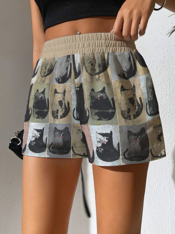 Women's Casual Funny Cute Cat Art Graphic Printed Shorts