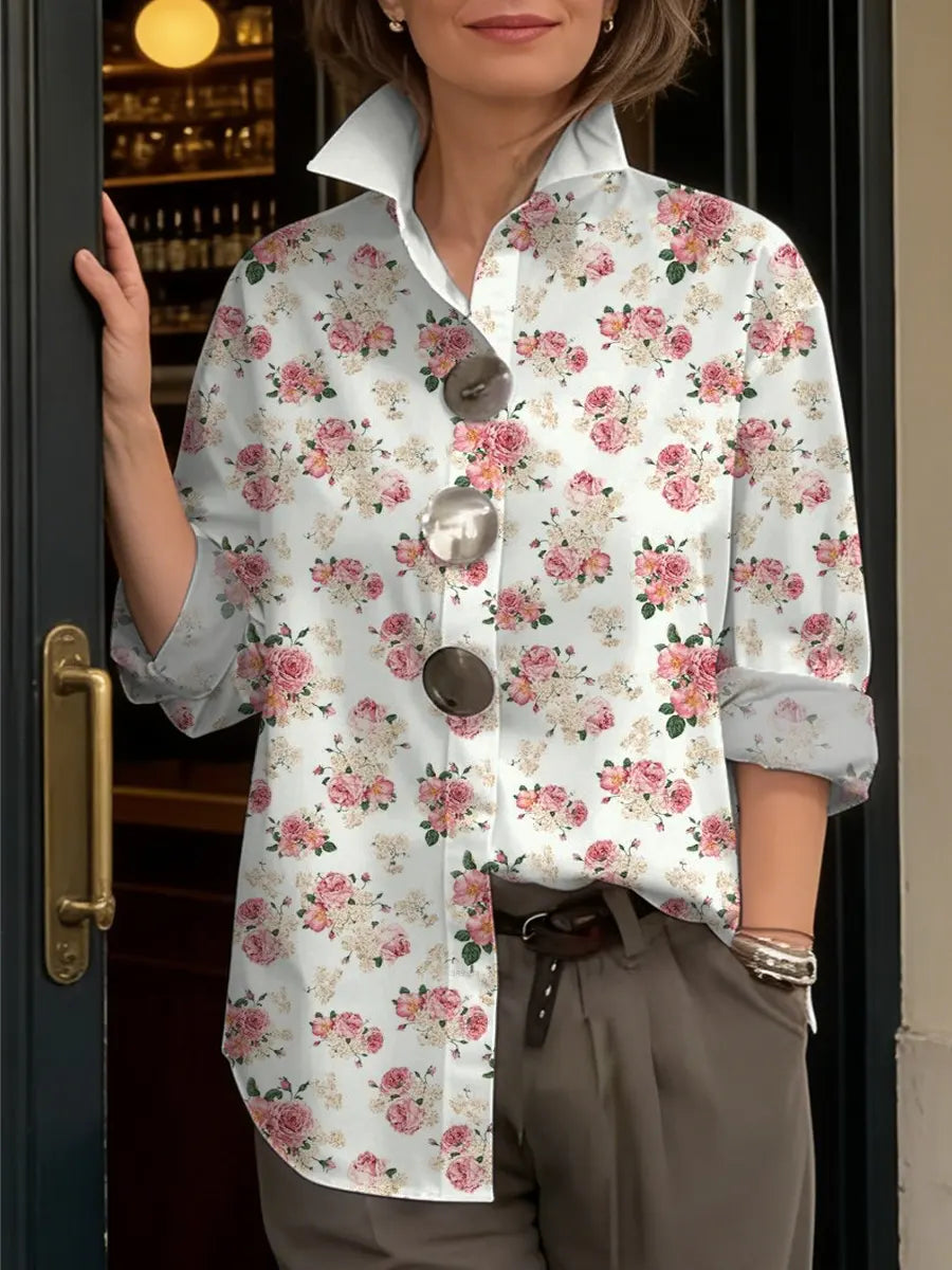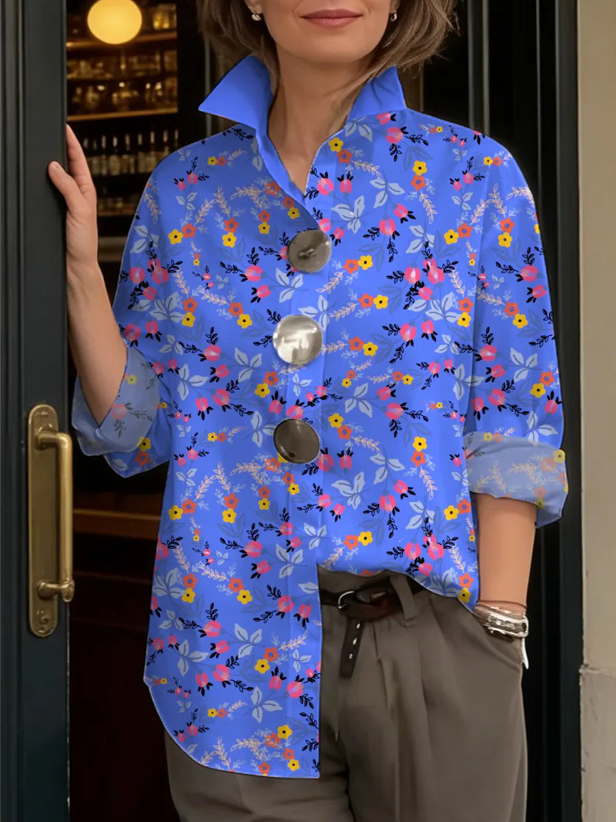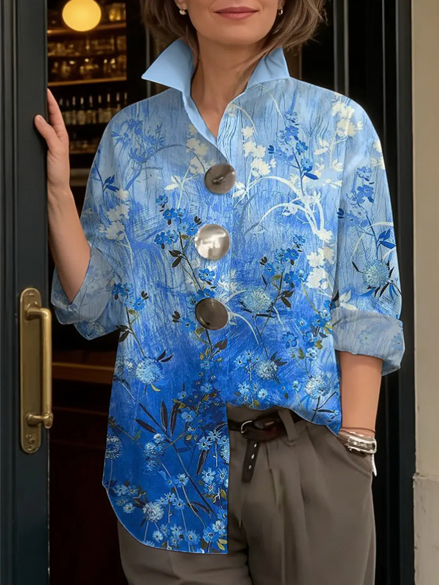 Women's Floral Art Print Casual Long Sleeve Cotton Shirt