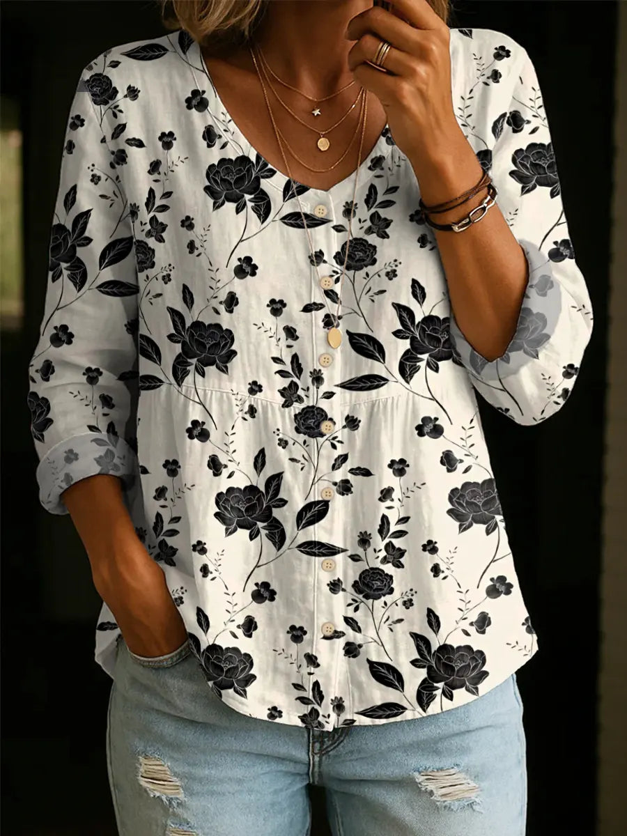 Women's Floral Pattern Art Print Casual Cotton Shirt