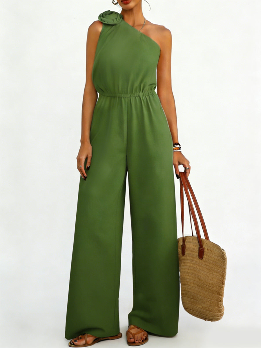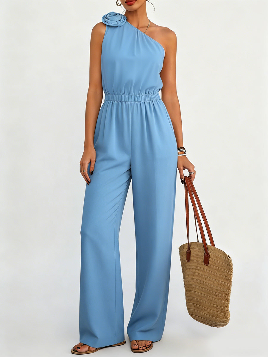 Women's French 3d Floral Embellished Off-shoulder Sleeveless Jumpsuit