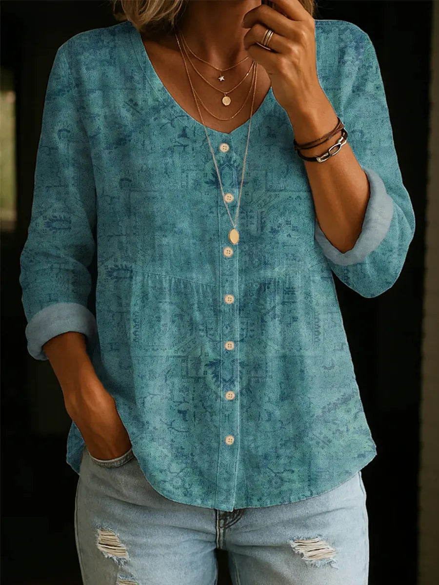Women's Vintage Pattern Art Print Casual Cotton Shirt