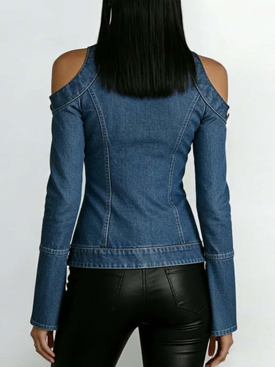 Women's Stand Collar Long Sleeve Casual Loose Denim Top