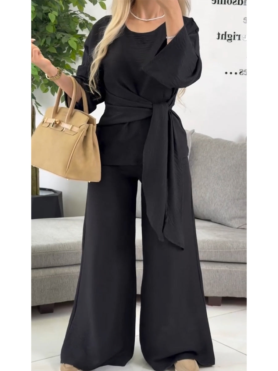 Casual Linen And Cotton Top And Pants Two-piece Set