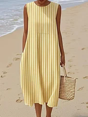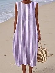 Women's Casual Striped Graphic Print Sleeveless Dress