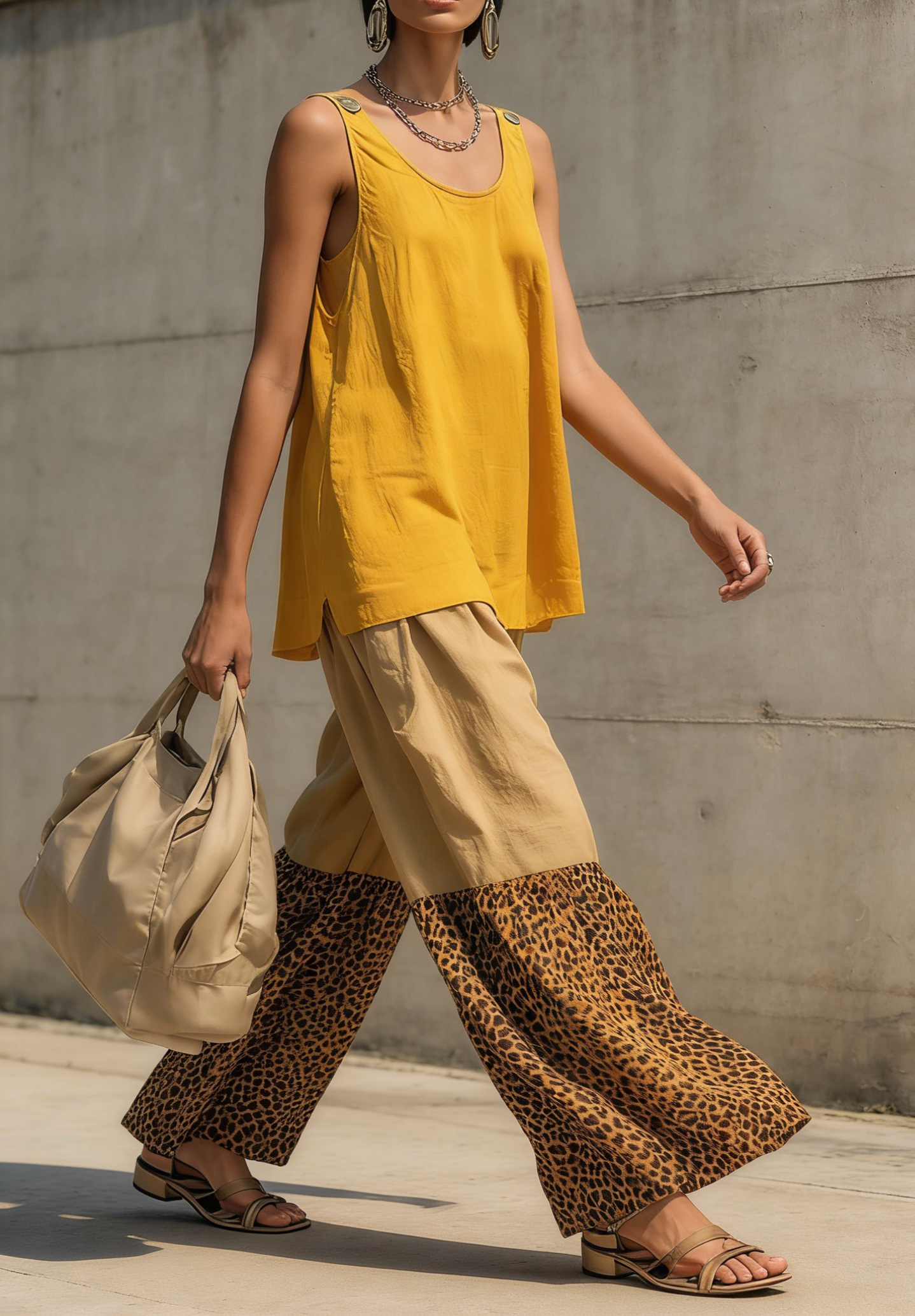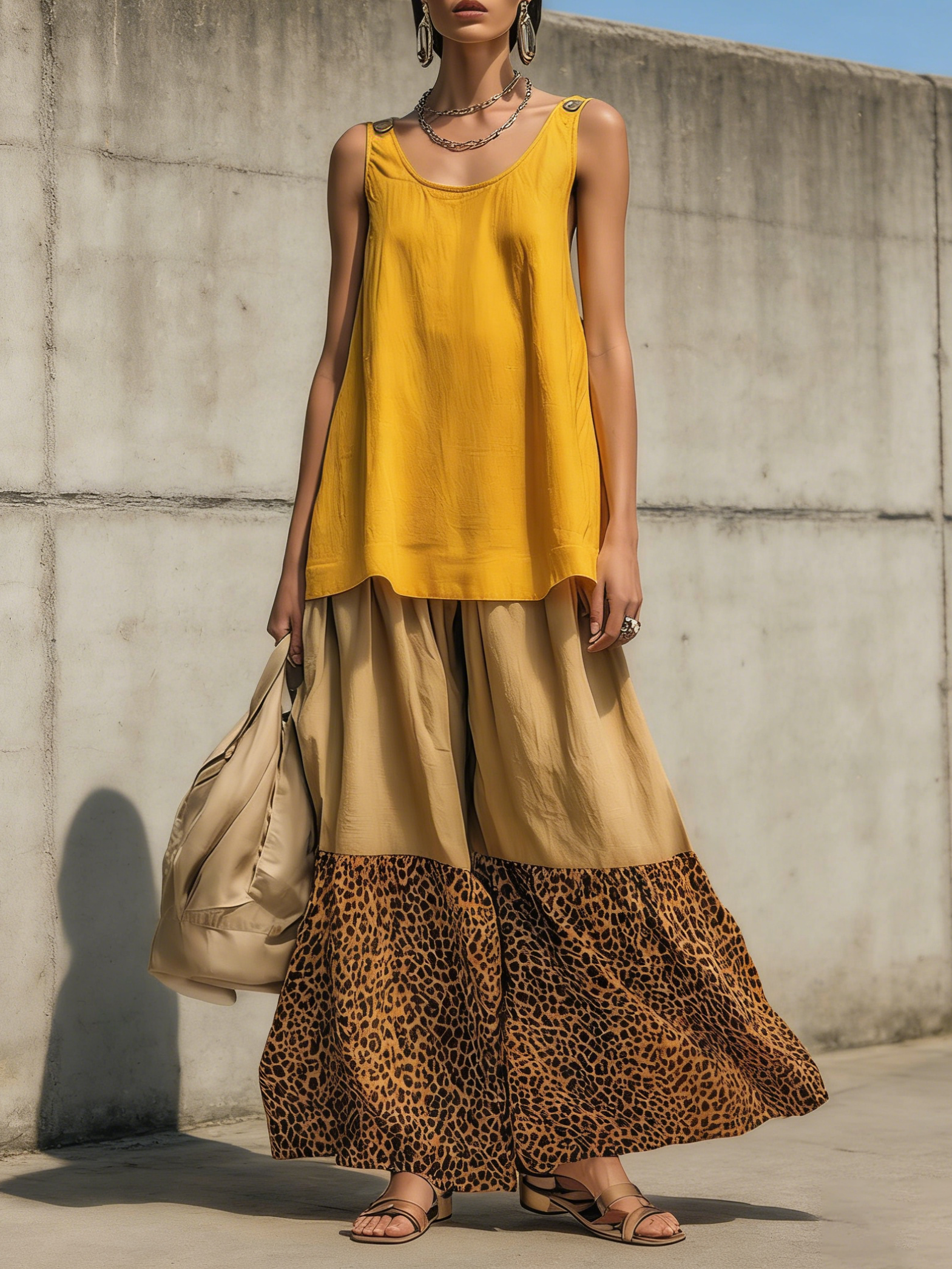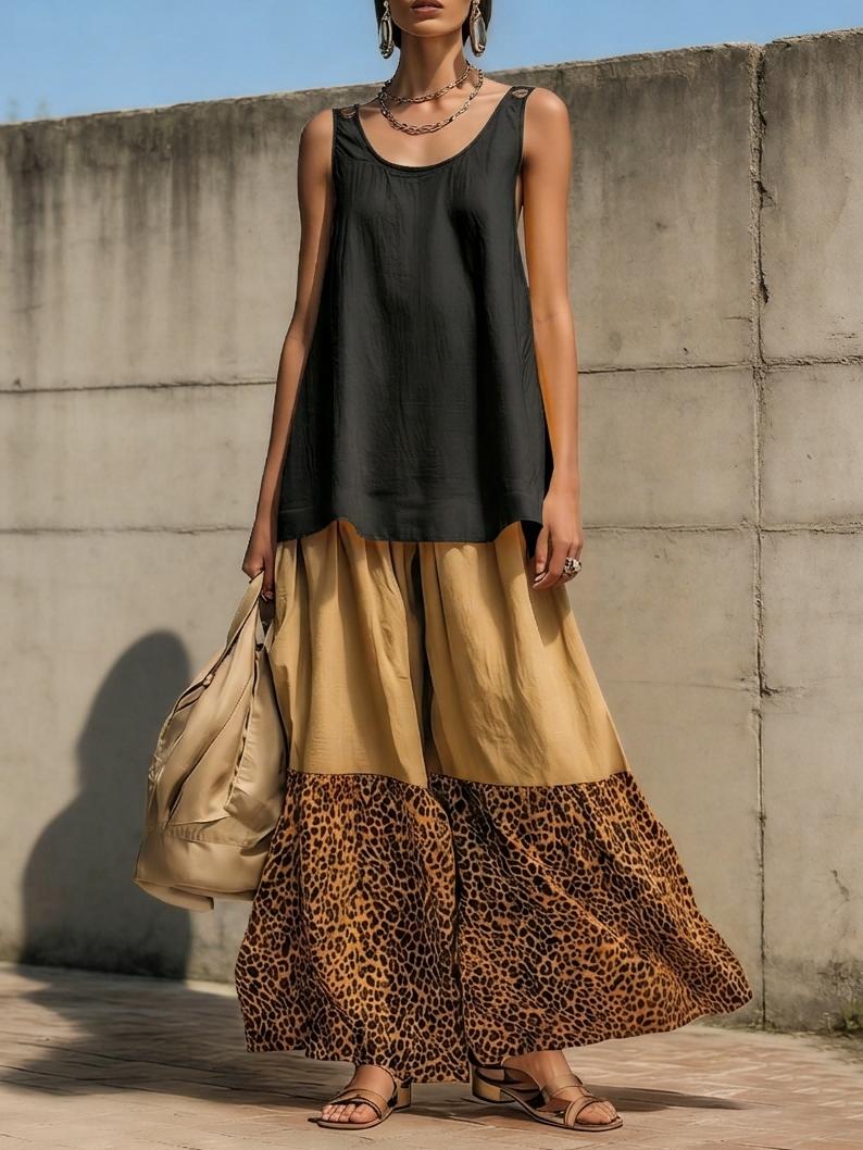 Casual Leopard Print Color-block Loose Cotton Two-piece Set