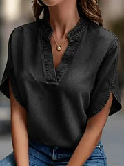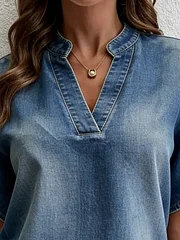 Casual V-neck Petal Sleeves Denim Blouse