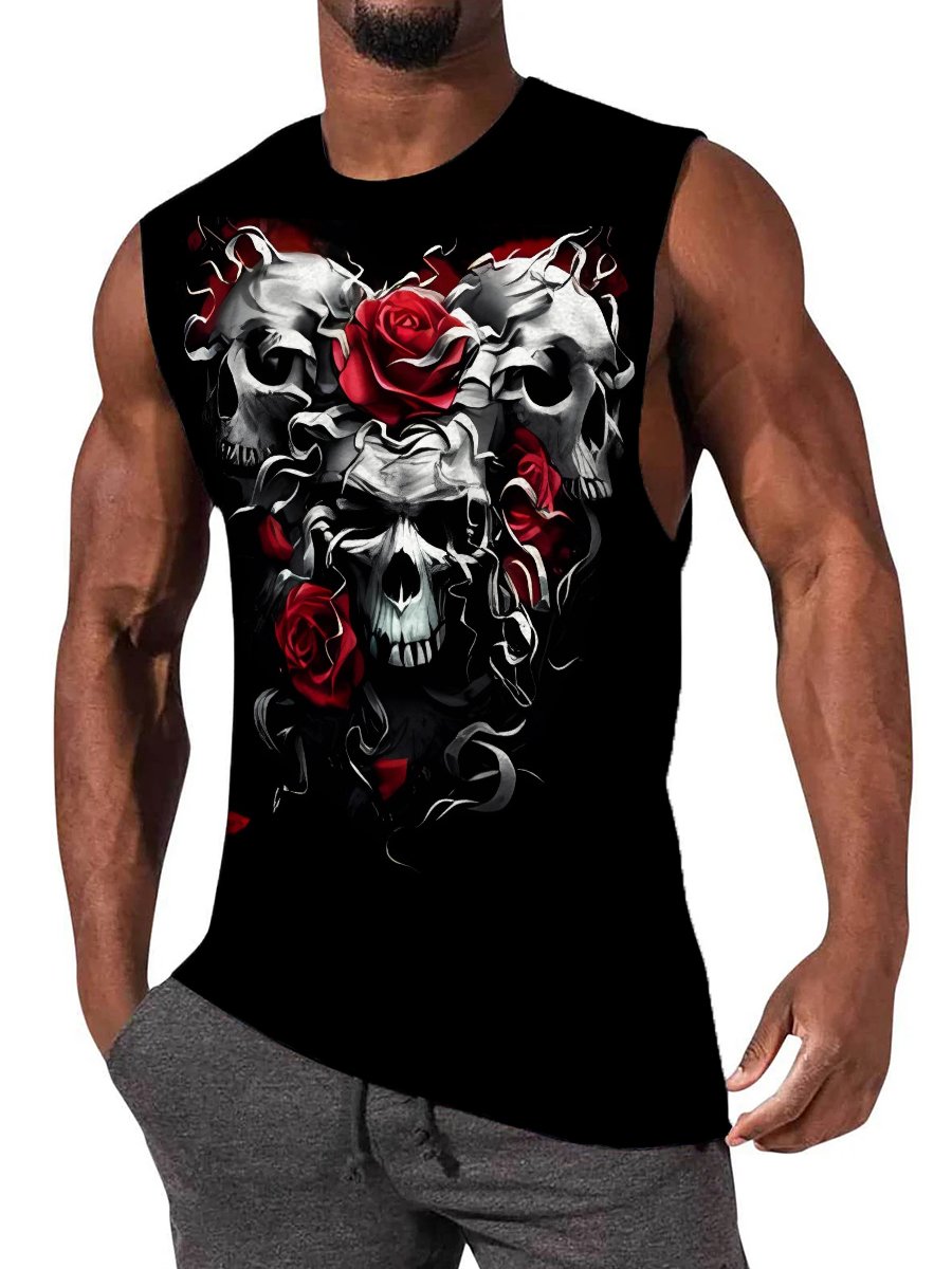 Men's Casual T-Shirt Skull Print Tank Top Sleeveless T-Shirt