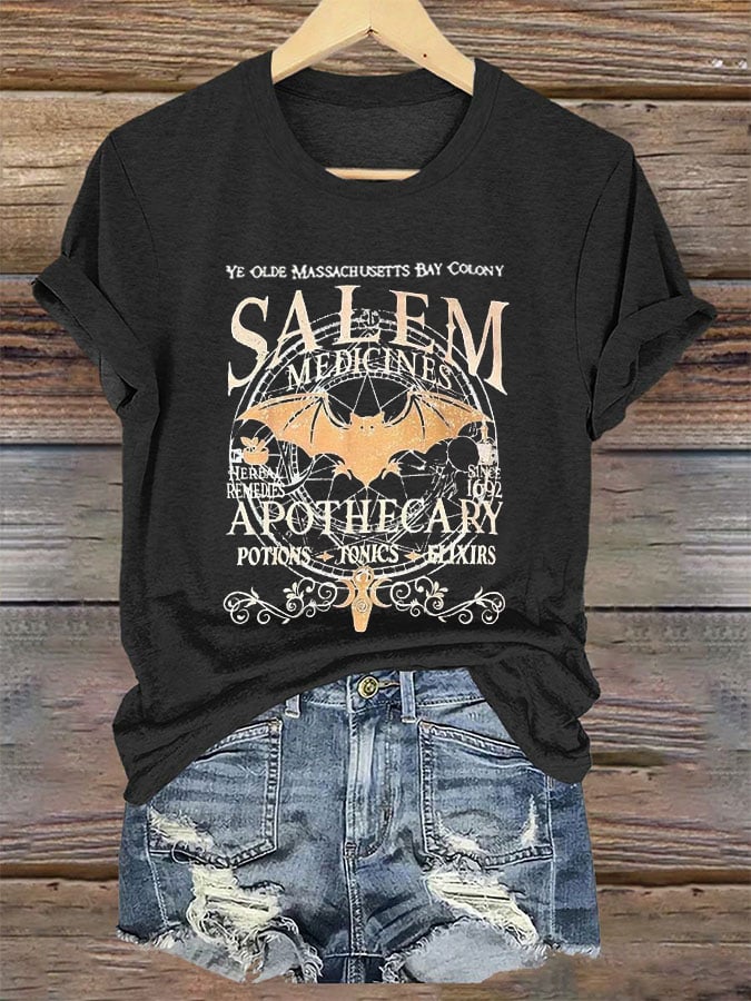 Women's Retro Salem Apothecary Halloween Casual Tee