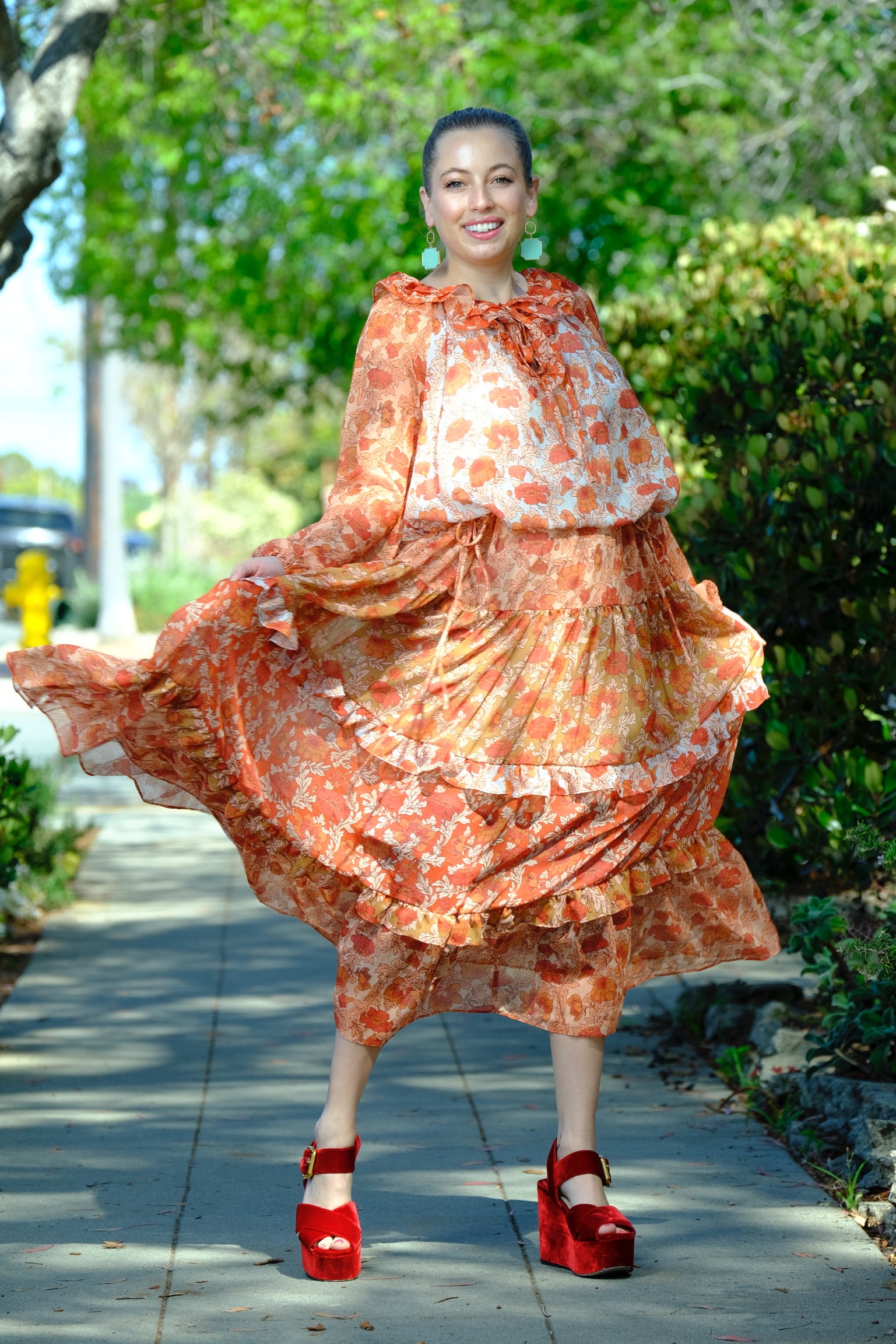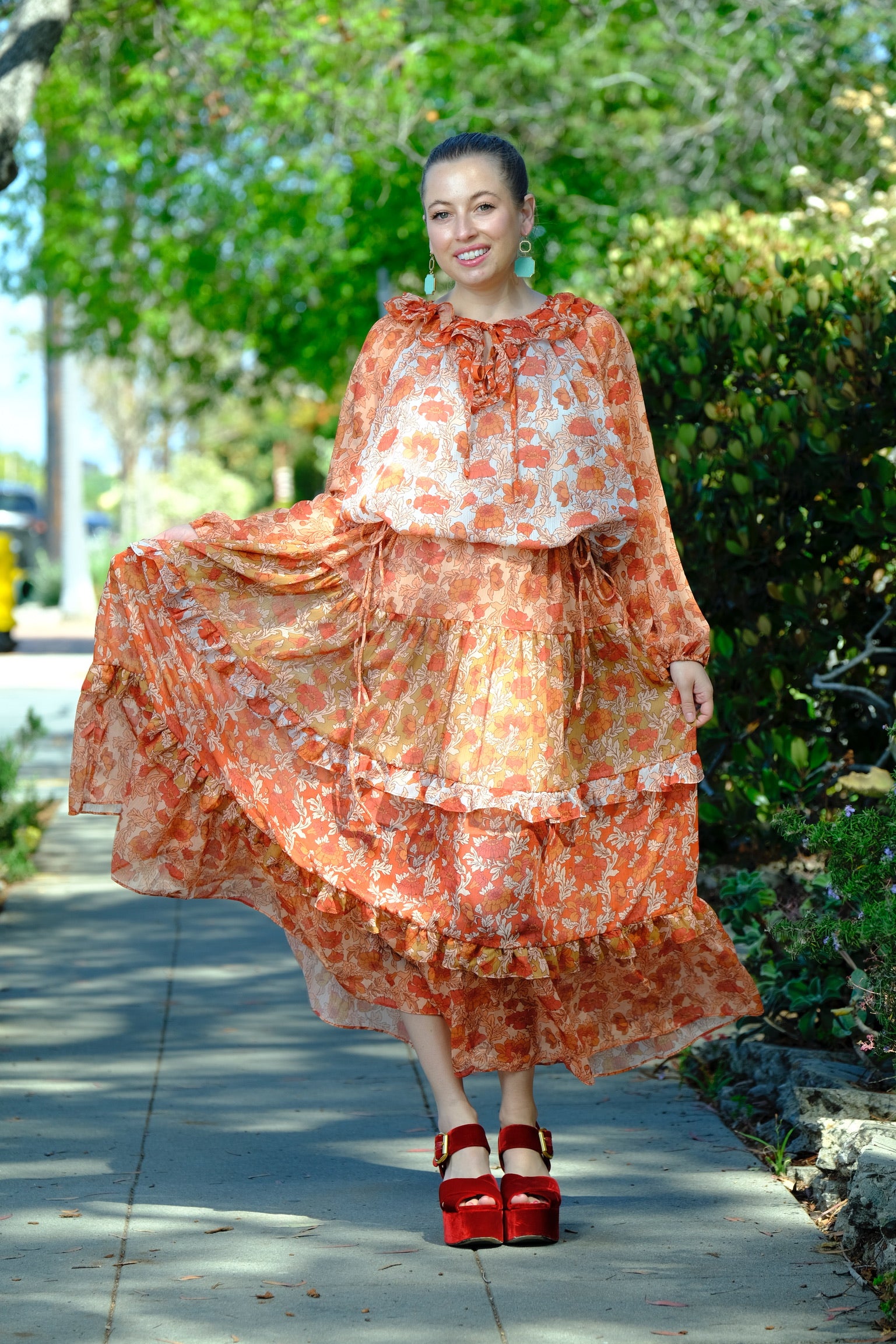 The most darling Spring dress. Easily cinched at the waist to create your shape while still being flowing and easy to wear.