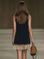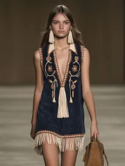 Western Retro Faux Suede Bohemian Style Embroidered Tassel Sleeveless Mini Dress