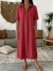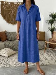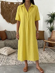 Combining the classic look of a polo shirt with the elegance of a relaxed dress silhouette, this piece is perfect for everyday wear. The breathable cotton-linen blend keeps you cool while the polo collar design adds a refined touch.