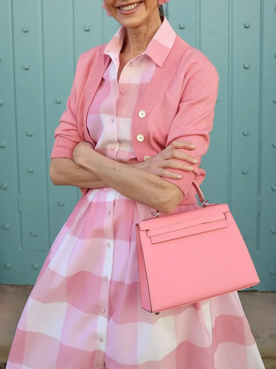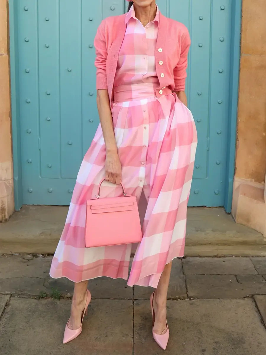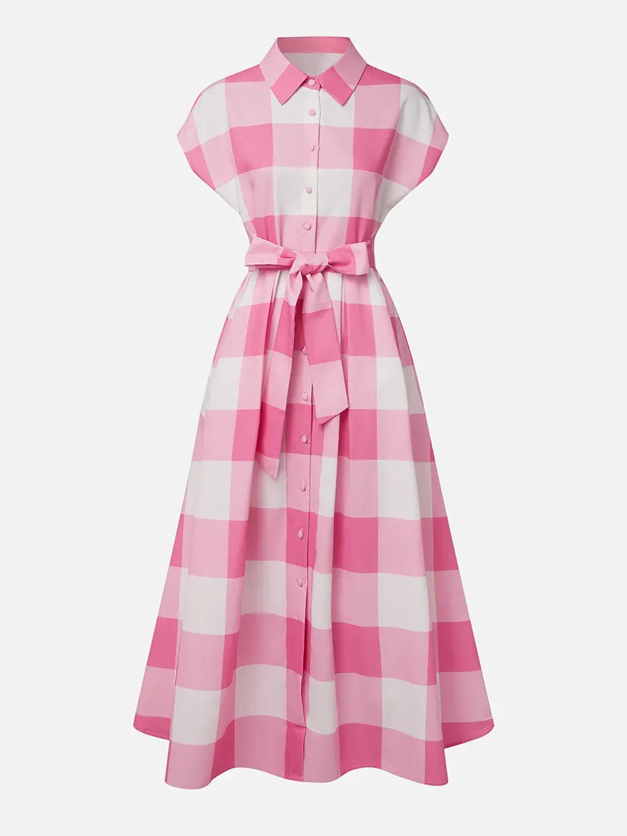 Women's Elegant Plaid Print Button Shirt Collar Midi Dress