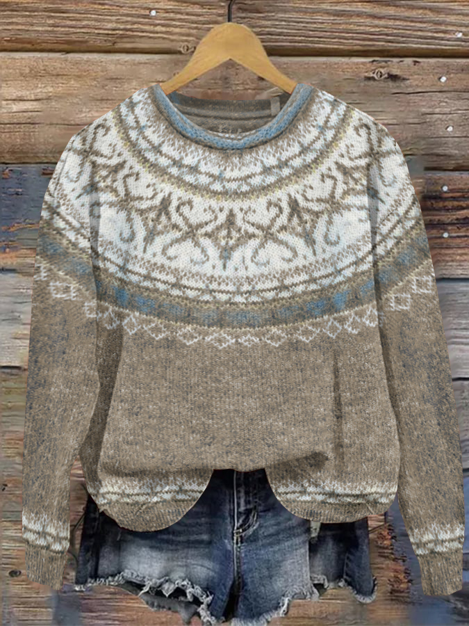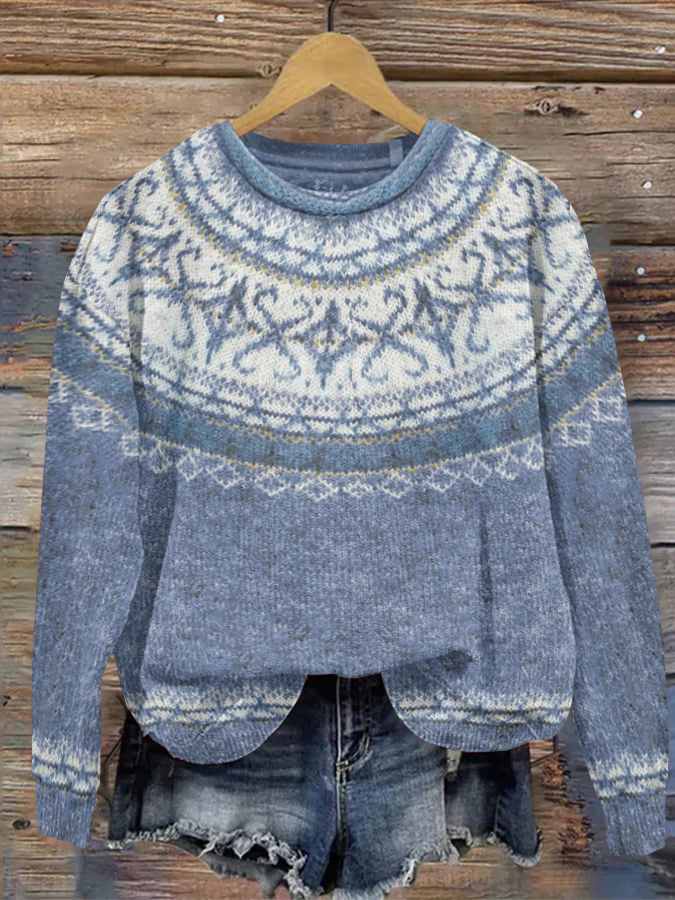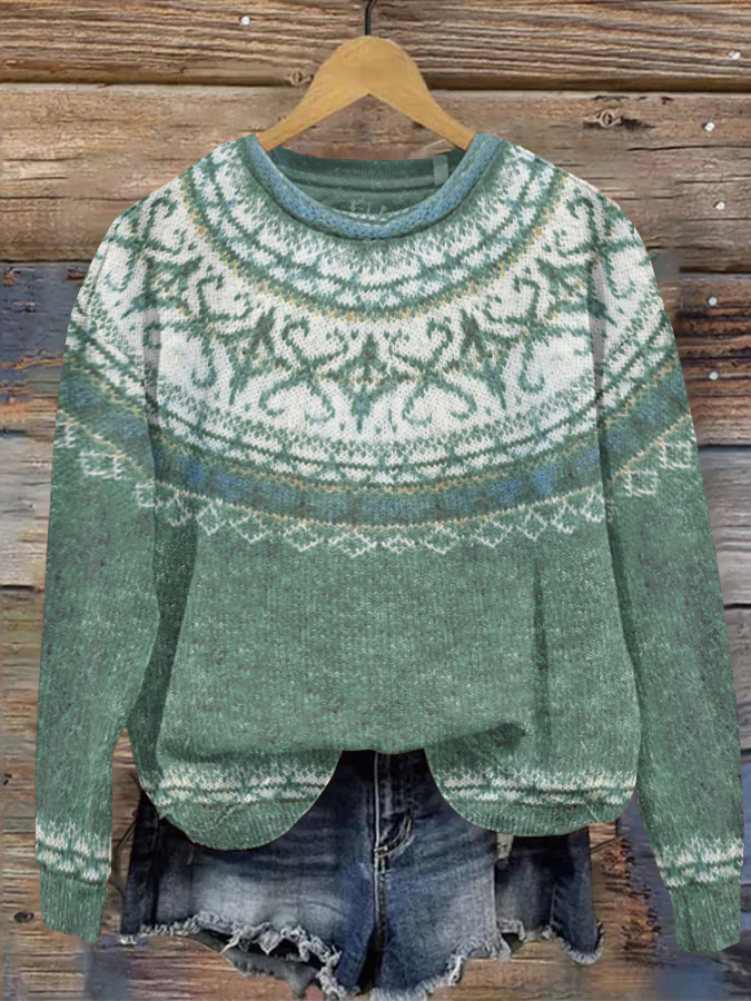 Icelandic Pattern Jacquard Vintage Knit Sweater