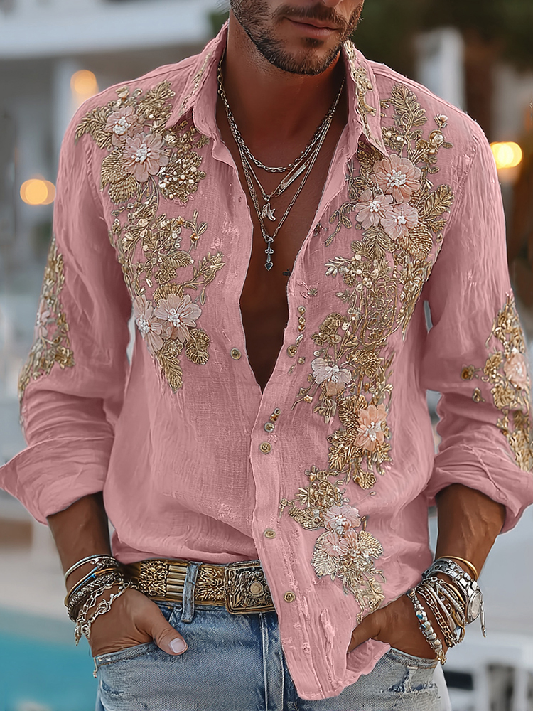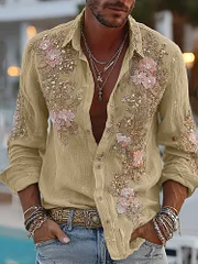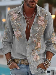 Men's Retro Floral Embroidered Comfy Linen Shirt