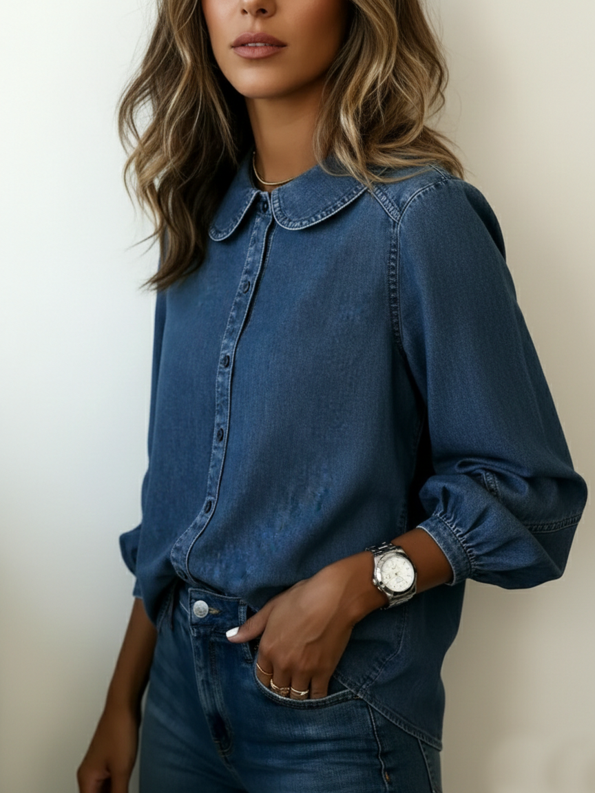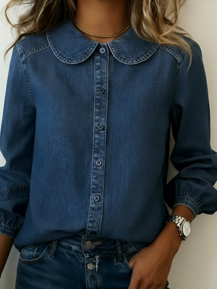 Retro Peter Pan Collar Denim 100% Cotton Shirt