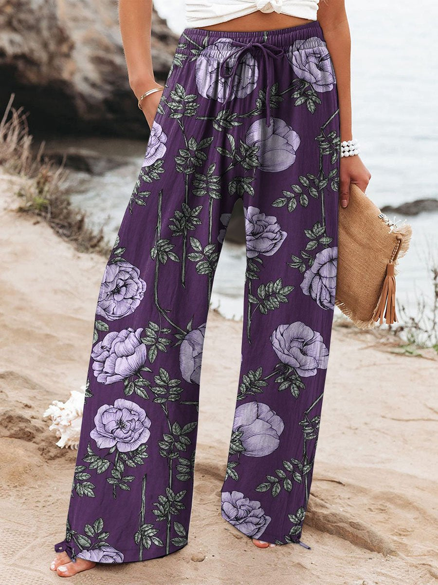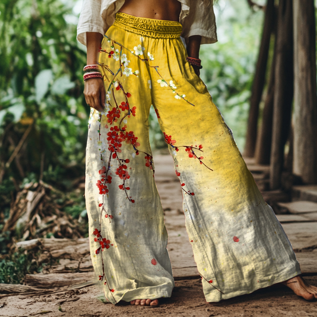 Women's Flower Print Cotton Wide Leg Pants