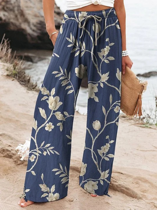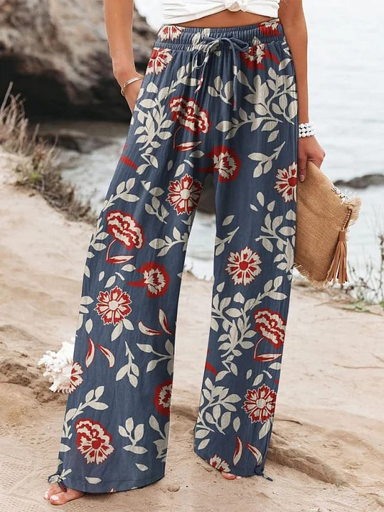 Women's Floral Printed Cotton And Linen Casual Pants