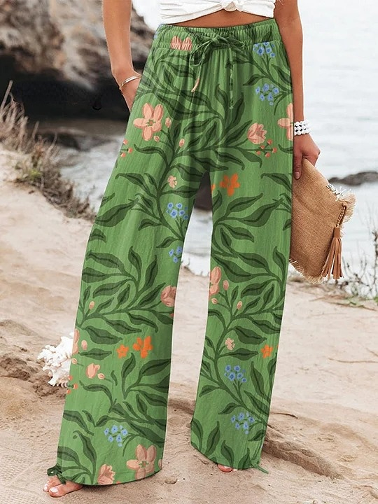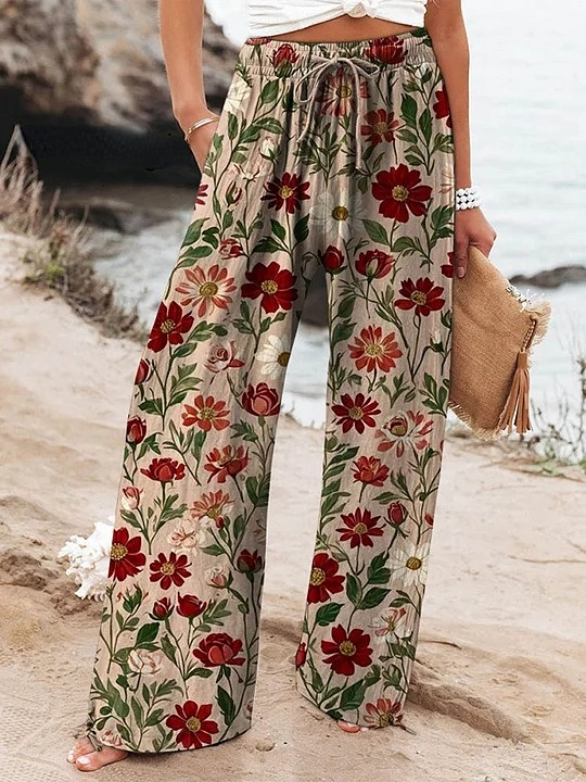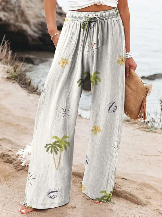 Women's Vintage Beach Print Art Print Linen Casual Pants