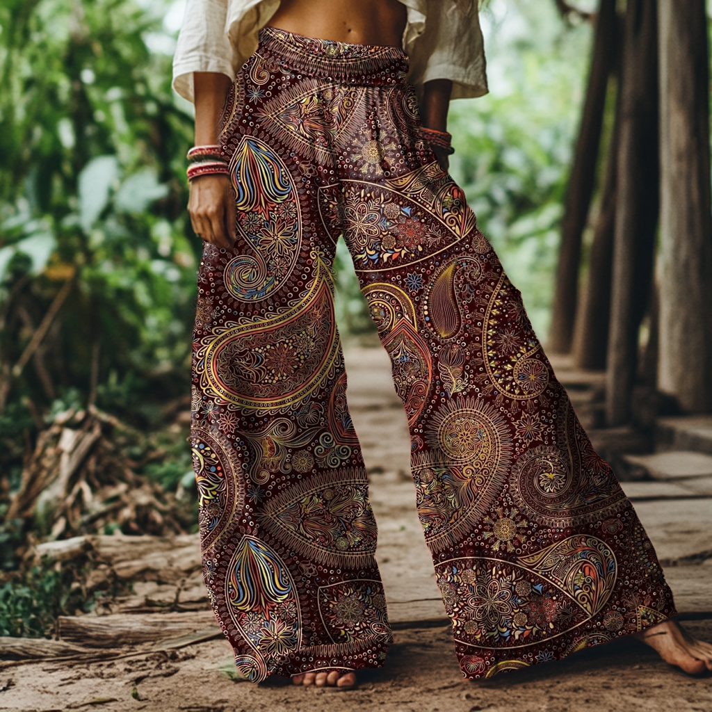 Vintage Paisley Ethnic Print Loose Wide-leg Pants