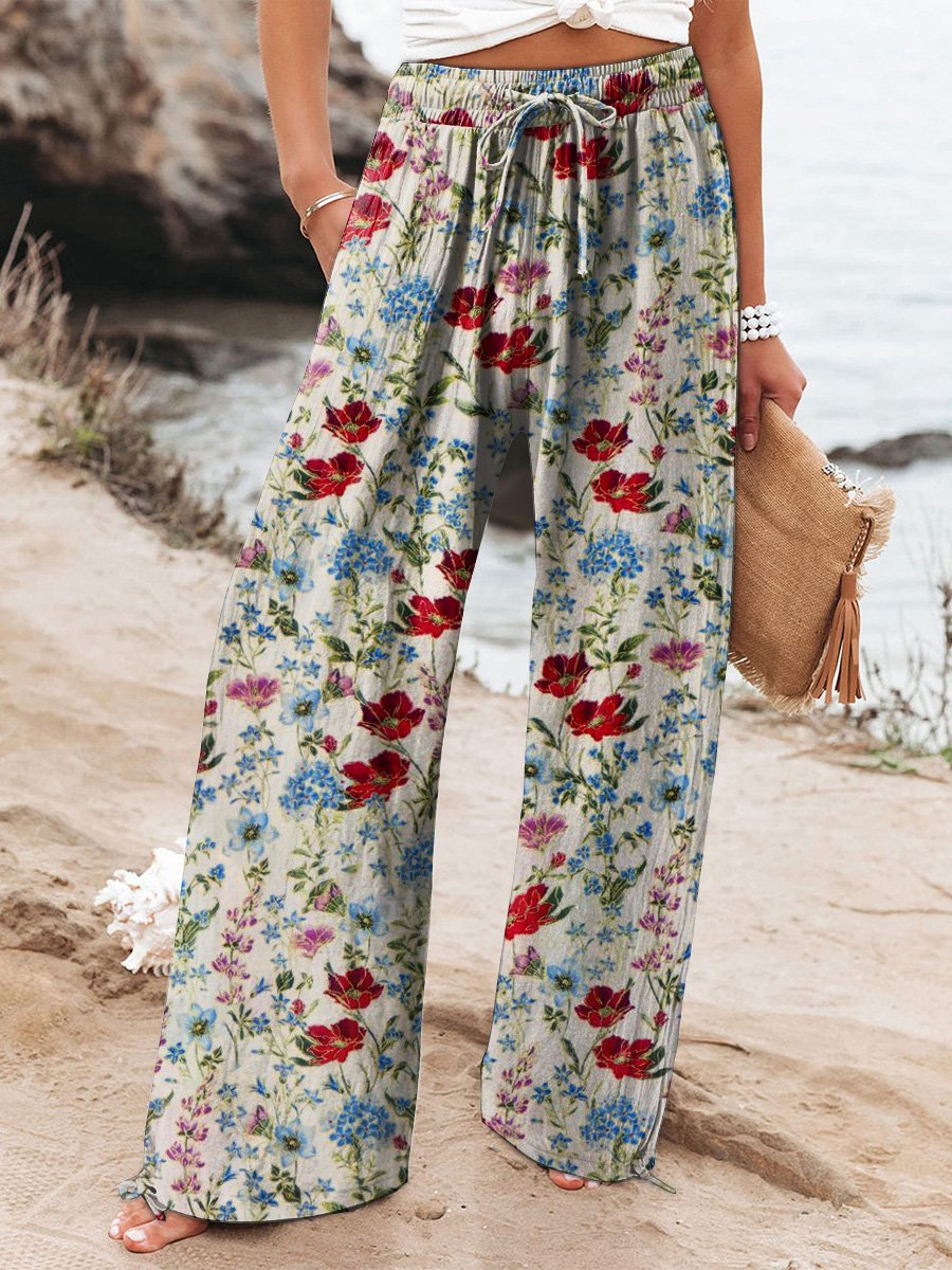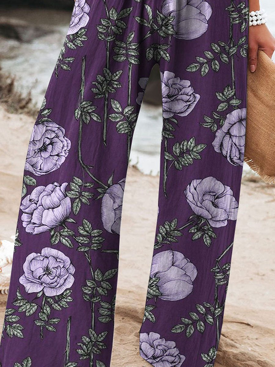 Vintage Floral Art Print Loose Pants