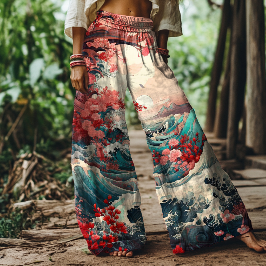 Vintage Japanese Art Print Loose Wide-leg Pants