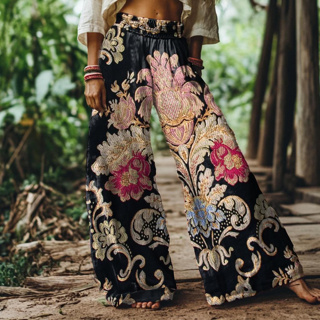 Vintage Ethnic Floral Art Print Loose Pants