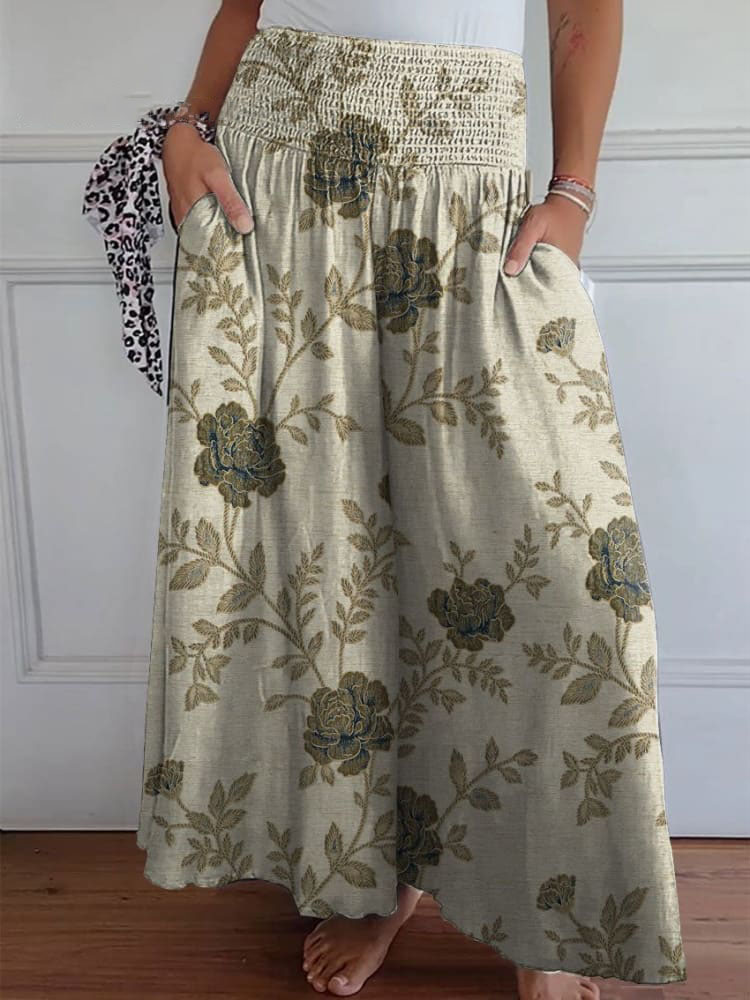 Women's Vintage Floral Art Printed Cotton And Linen Casual Pants