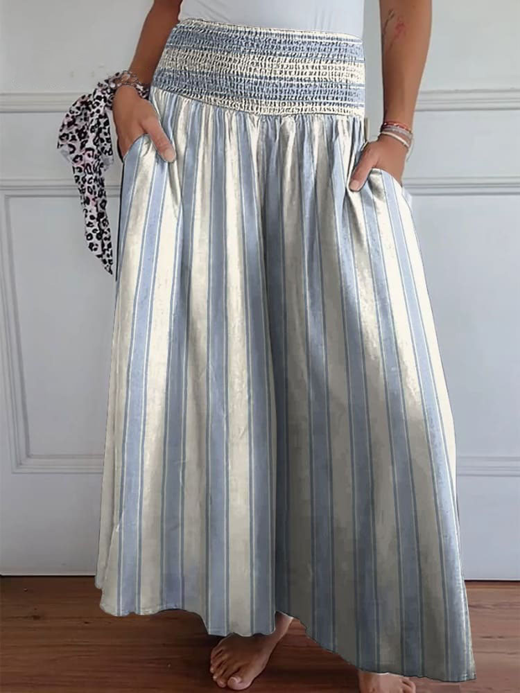 Women's Stripe Print Cotton Wide Leg Pants