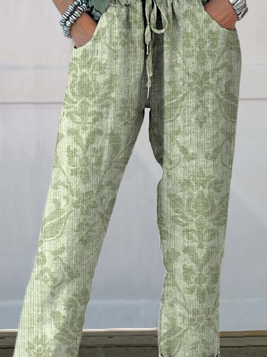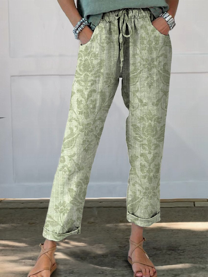 Women's Vintage Ethnic Texture Floral Printed Cotton And Linen Casual Pants