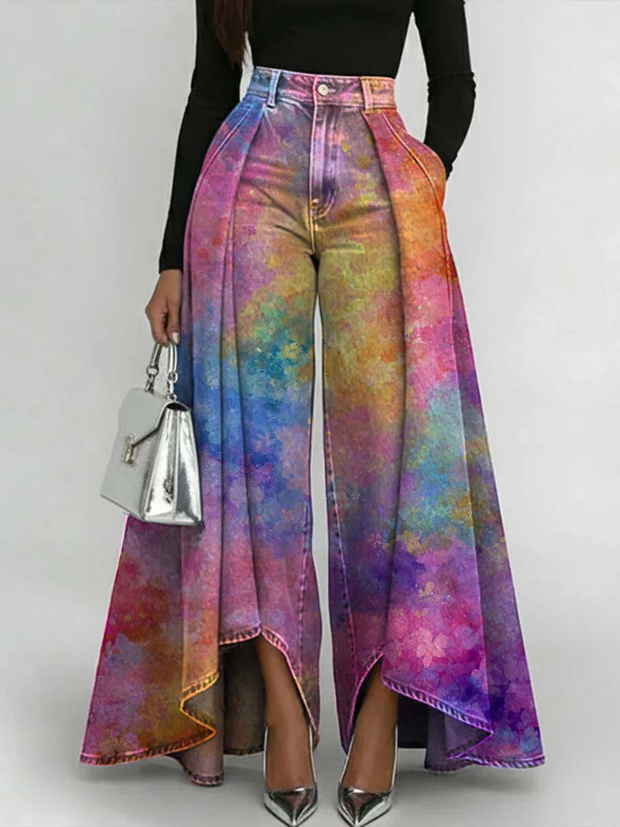 Women's Gradient Colors Print Casual High-waist Loose Jeans