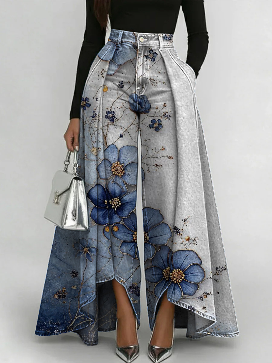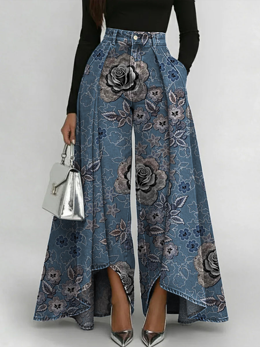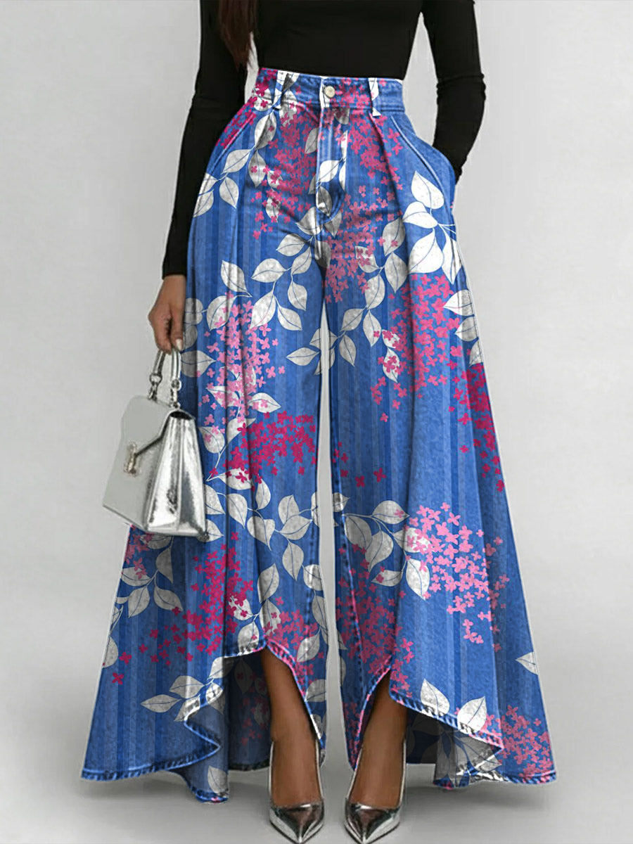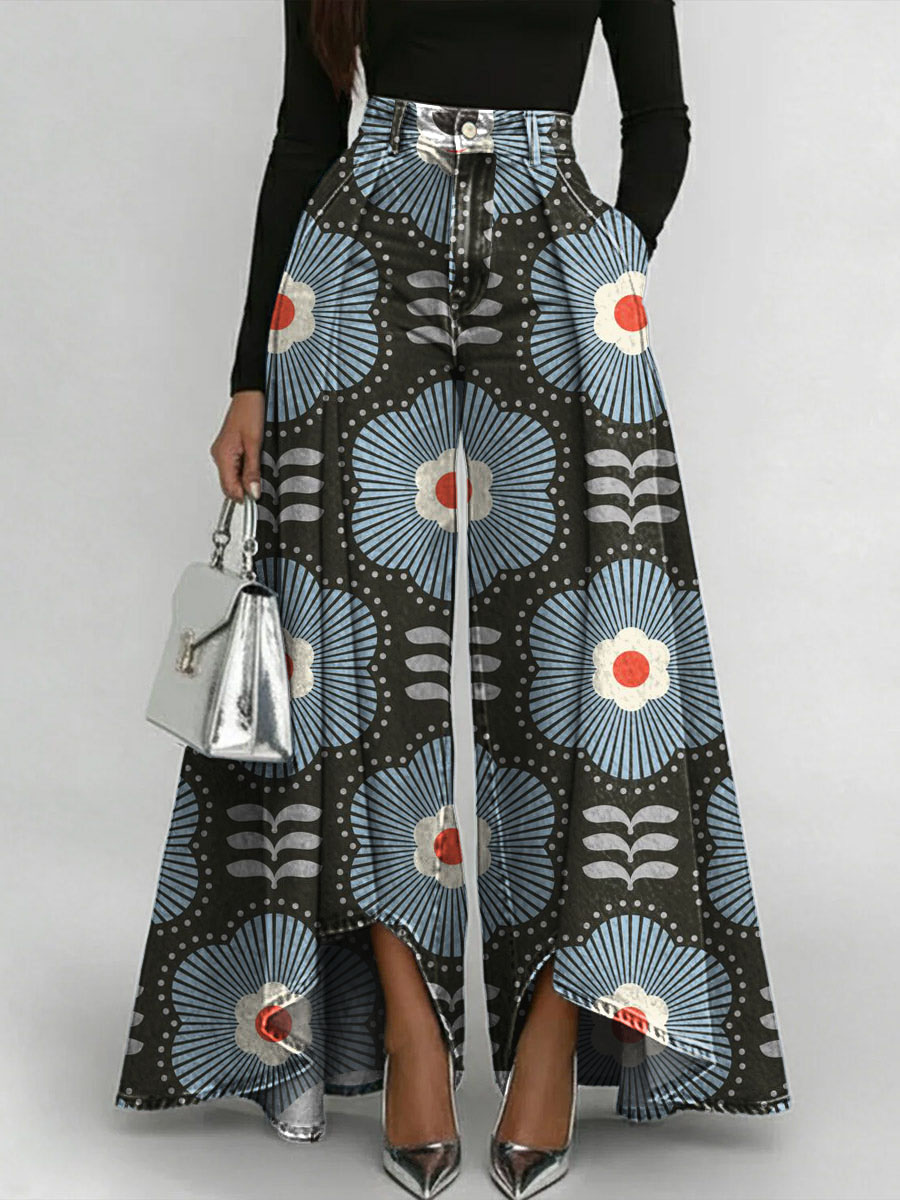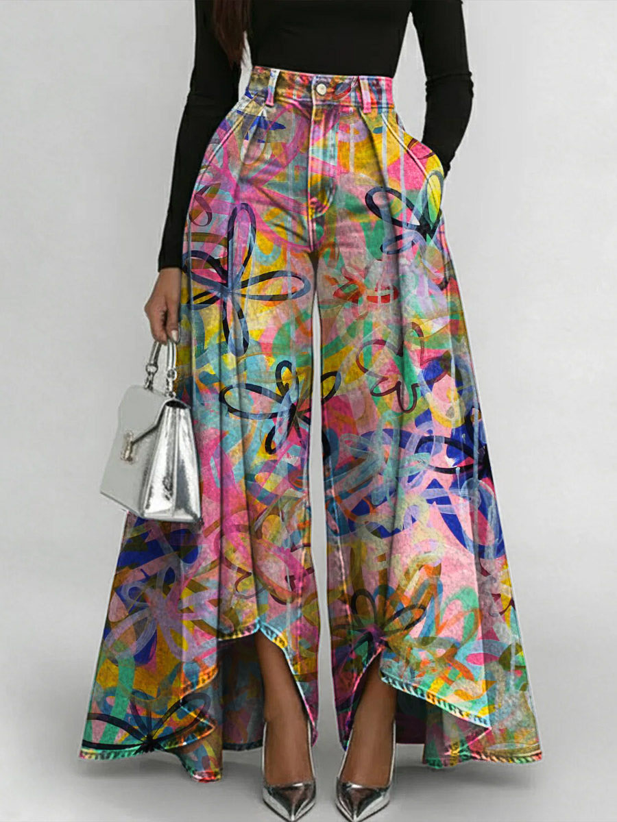 Vintage Floral Art Print Loose Wide-leg Pants