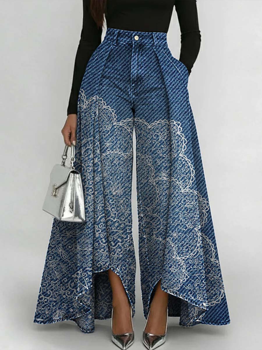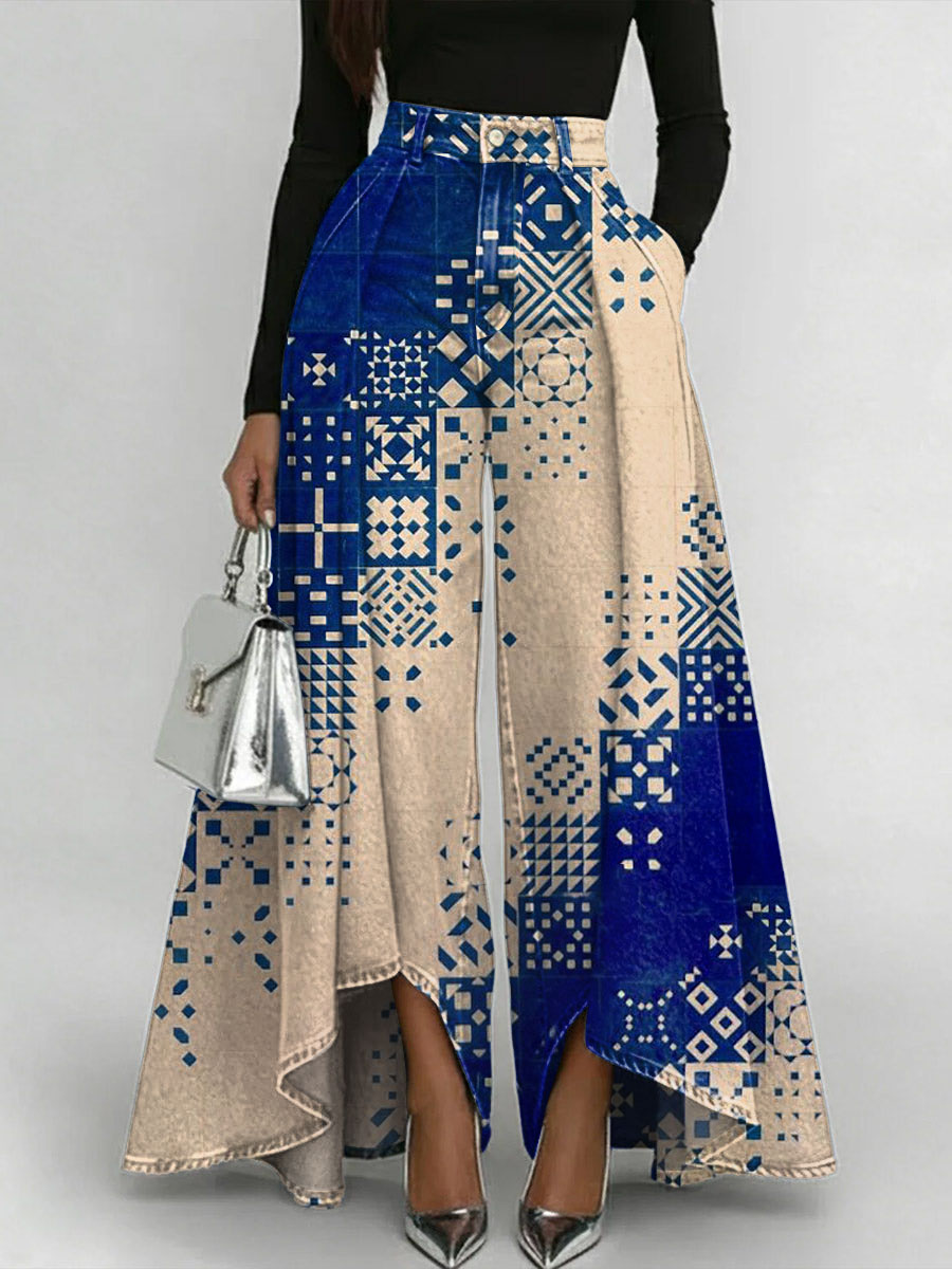 Vintage Art Print Loose Wide Leg Pants
