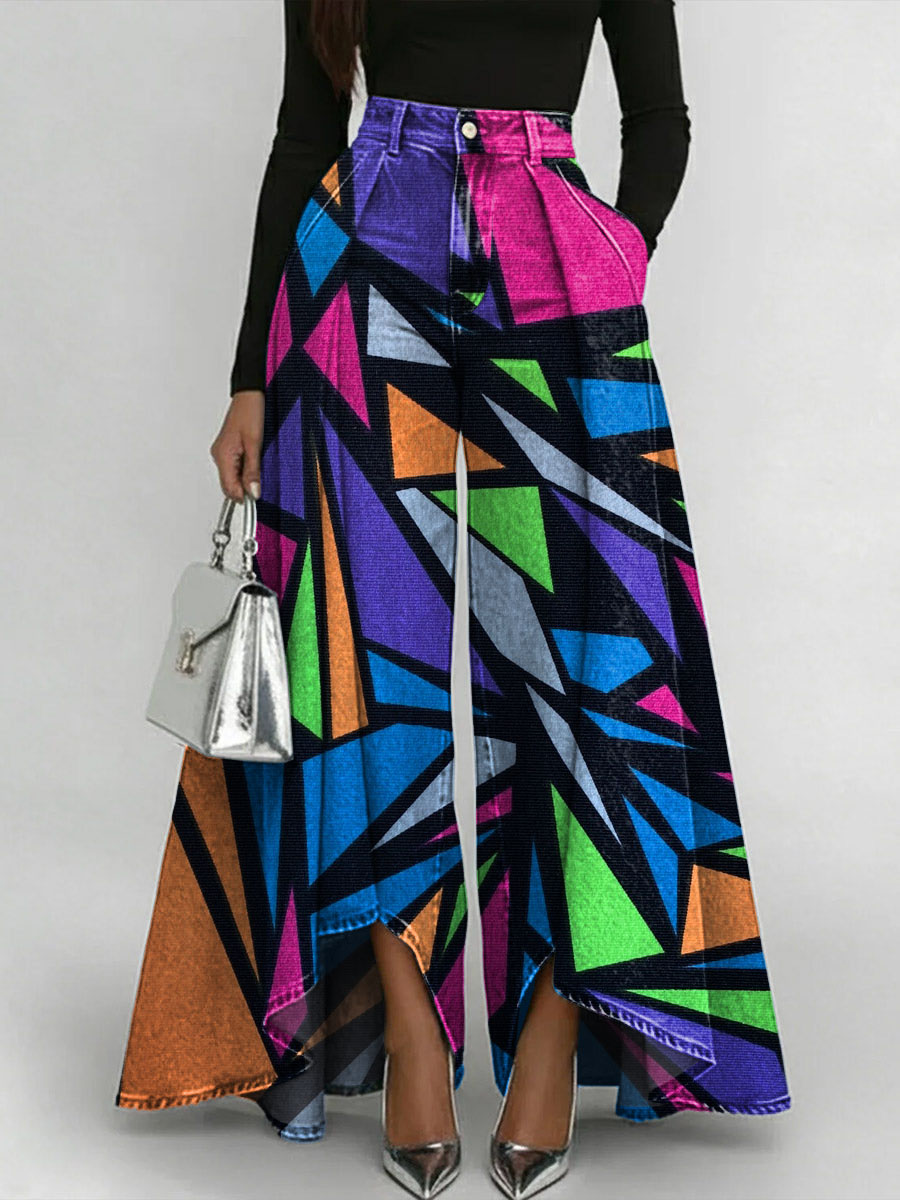 Women's Geometry Art Print Casual High-waist Loose Jeans