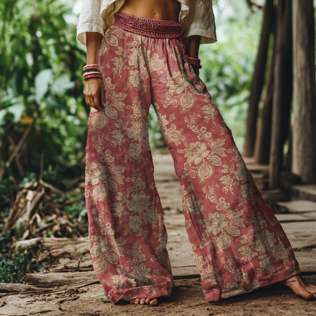 Vintage Bohemian Floral Print Loose Wide-leg Pants
