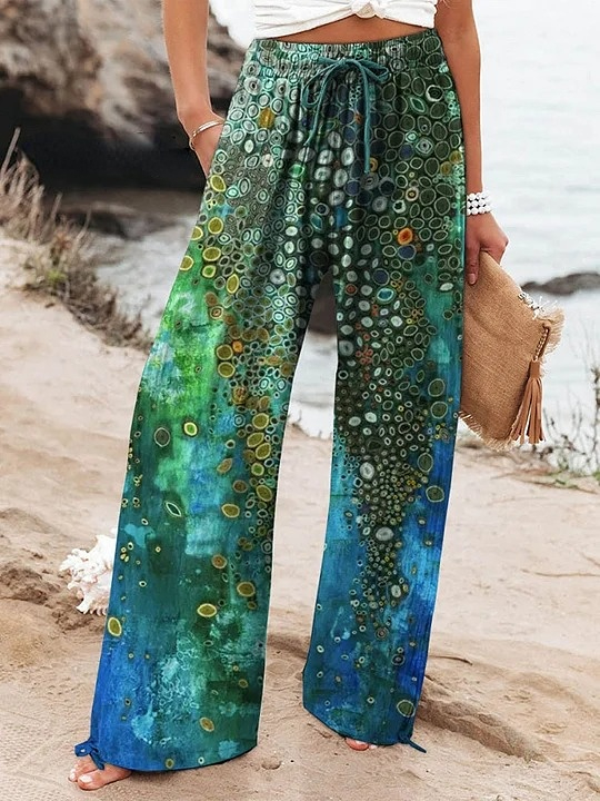 Women's Abstract Ocean Pattern Art Printed Cotton And Linen Casual Pants
