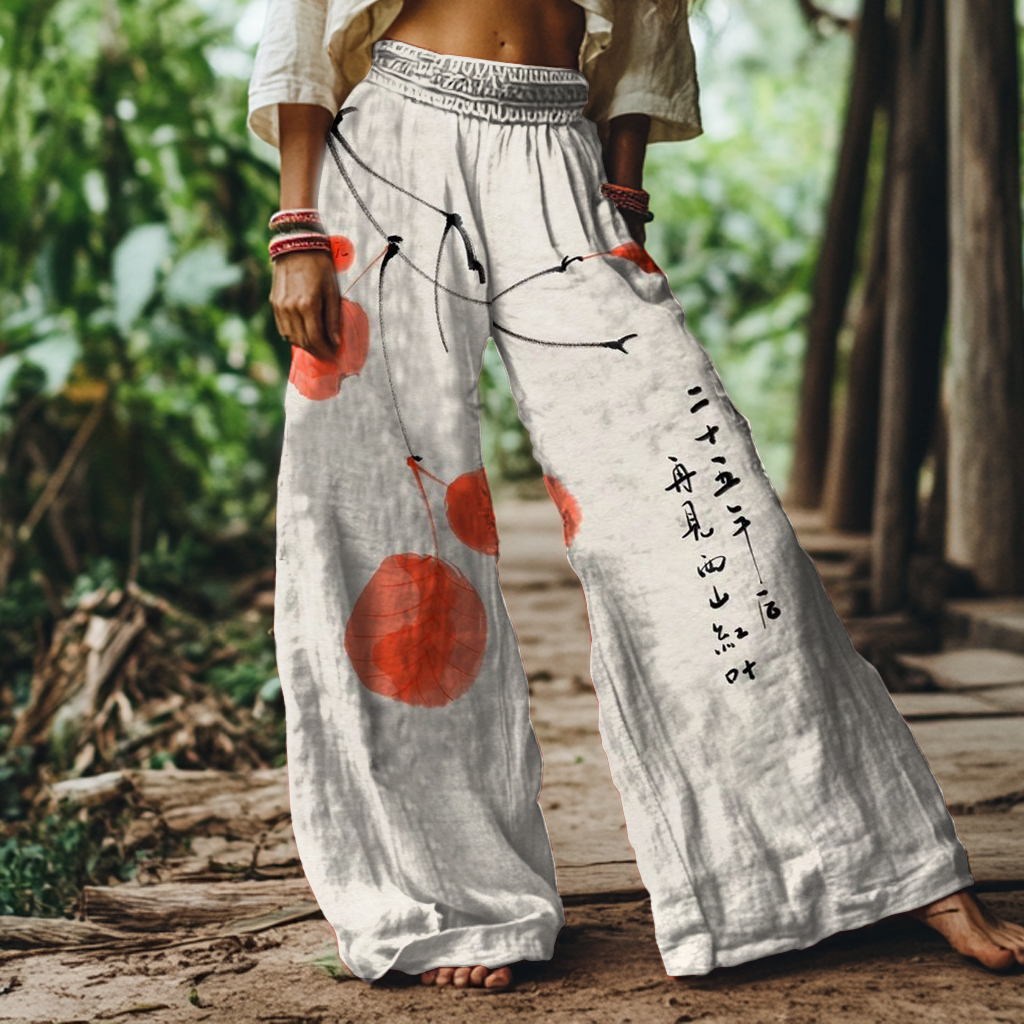 Retro Japanese Art Print Loose Wide-leg Pants