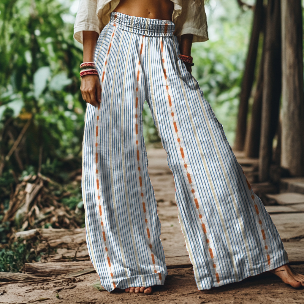 Vintage Stripe Art Print Loose Wide Leg Pants