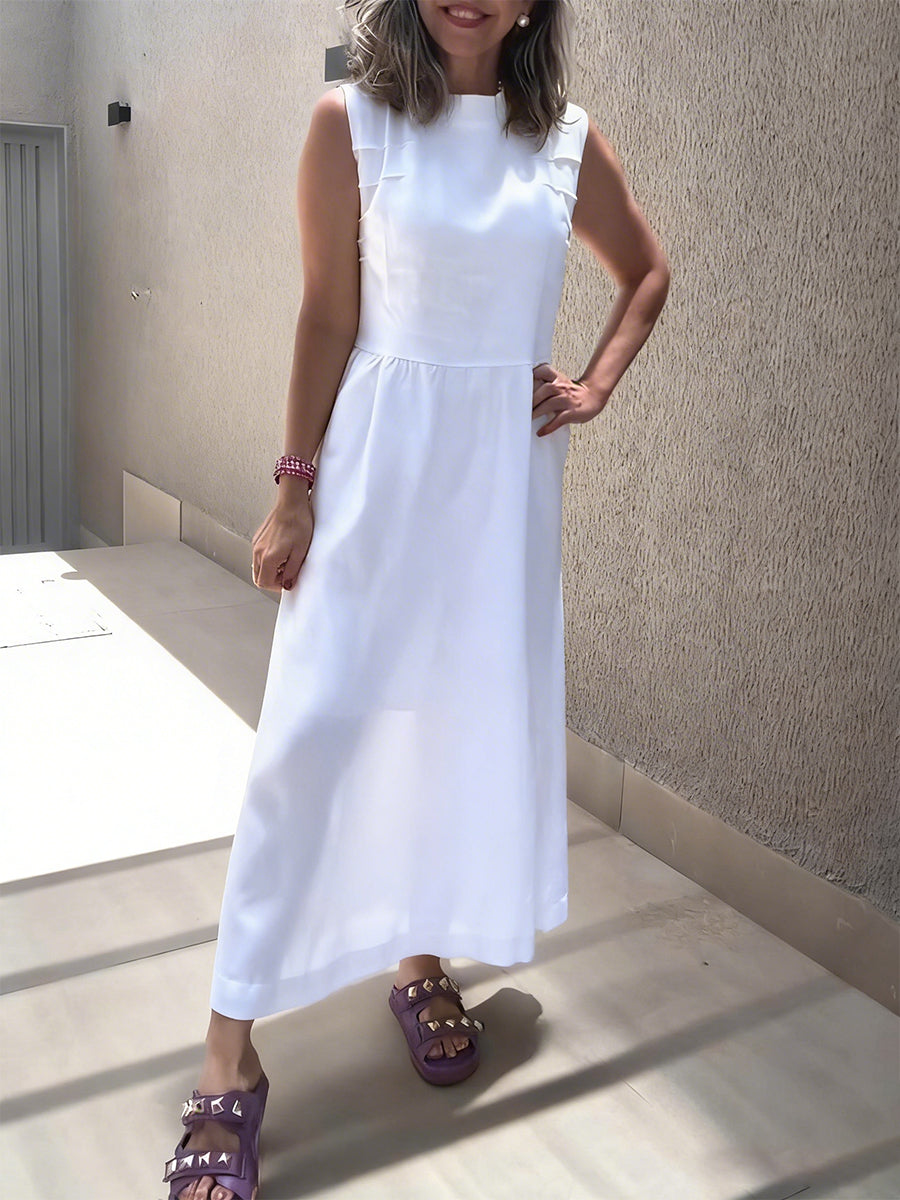 Women's Sleeveless Pleated Cotton And Linen Casual Dress