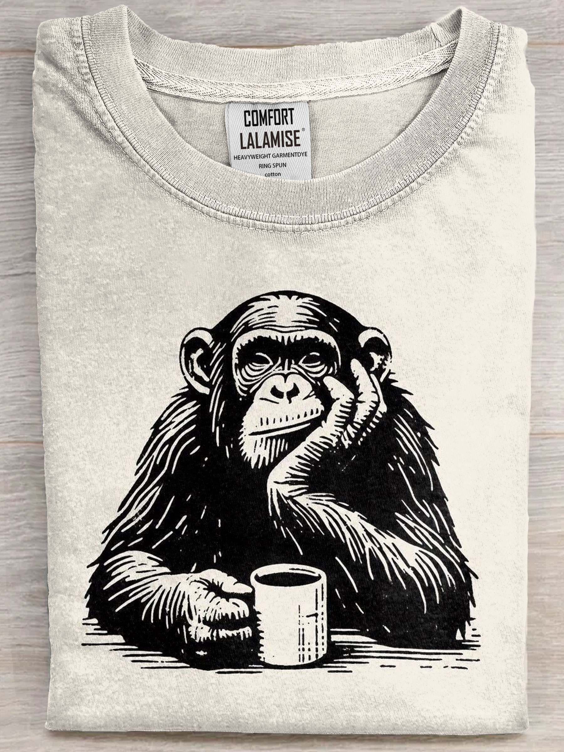 Gorilla With Coffee Art Print Casual Short Sleeve T-shirt
