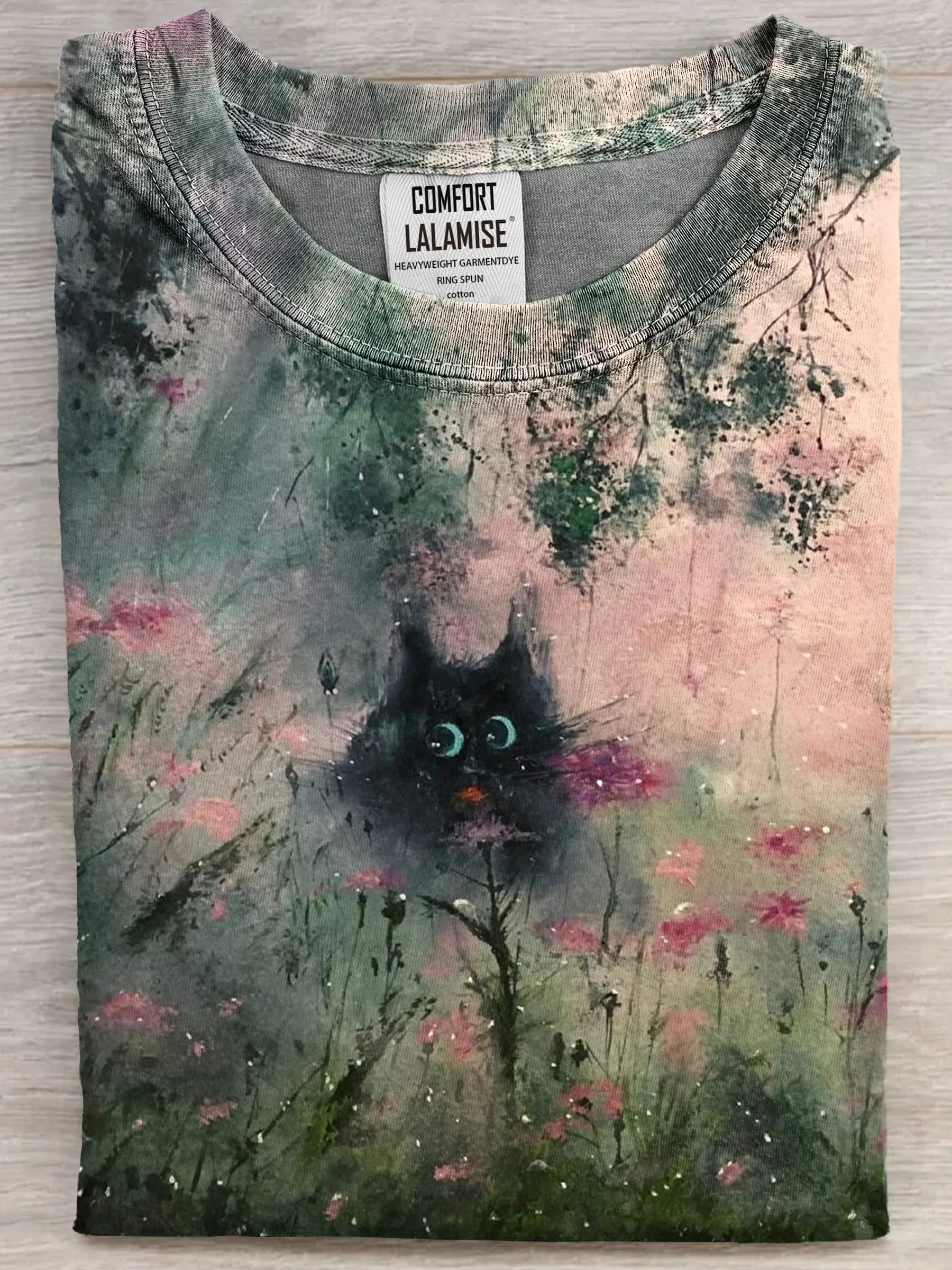 Funny Retro Black Cat Art Print Casual Cotton Short Sleeve T-shirt