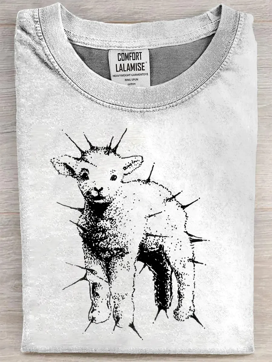 Retro Sheep Art Print Casual Pure Cotton Short Sleeved T-shirt