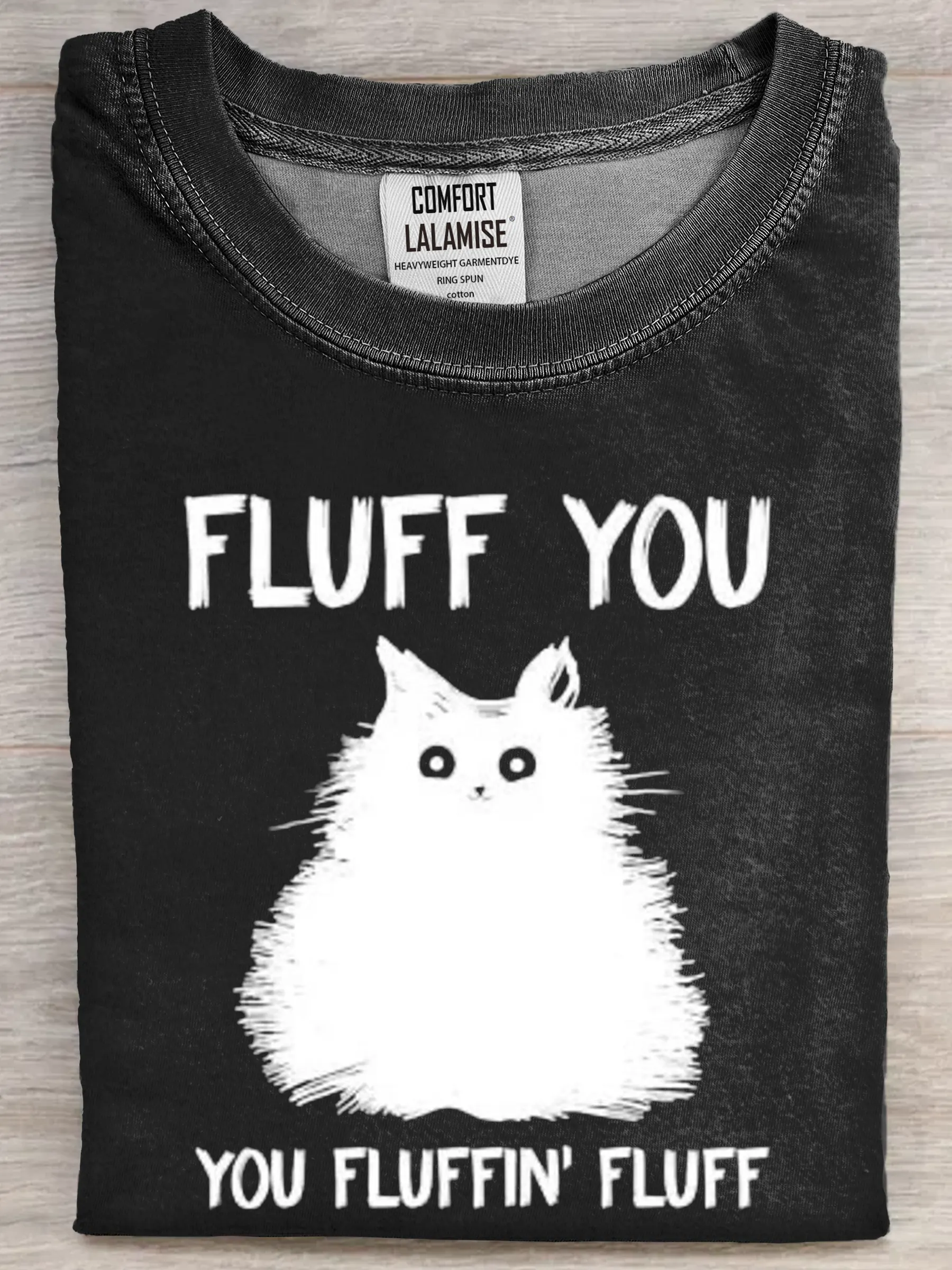 Fluff You Funny Dark Cat Art Print Casual Cotton Short Sleeve T-shirt