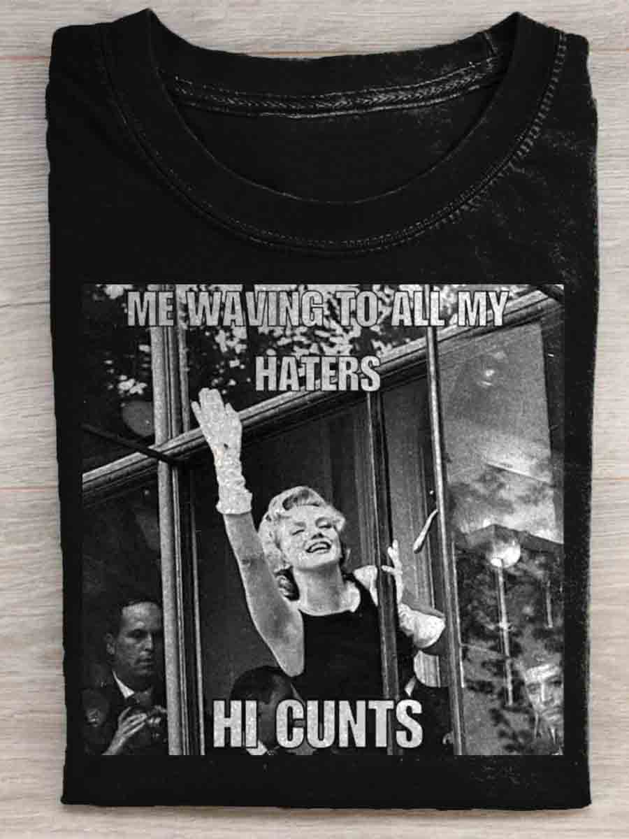 Me Waving To All My Haters Hi Cunts Funny Art Print T-shirt