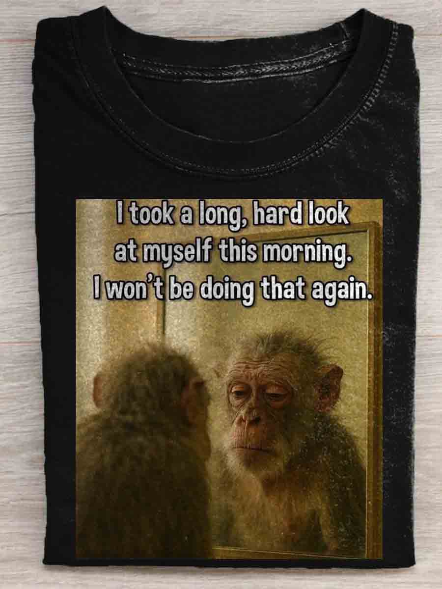I Took A Long Hard Look At Myself This Morning I Won't Be Doing That Again Funny Monkey Art Print T-shirt